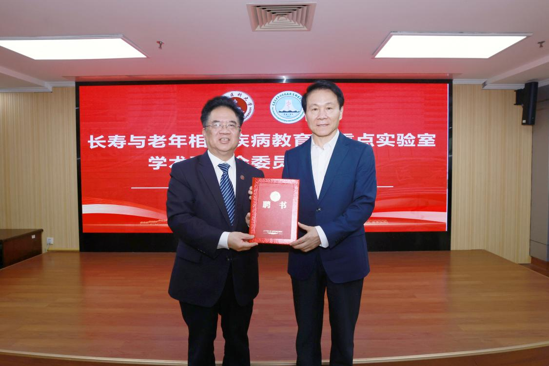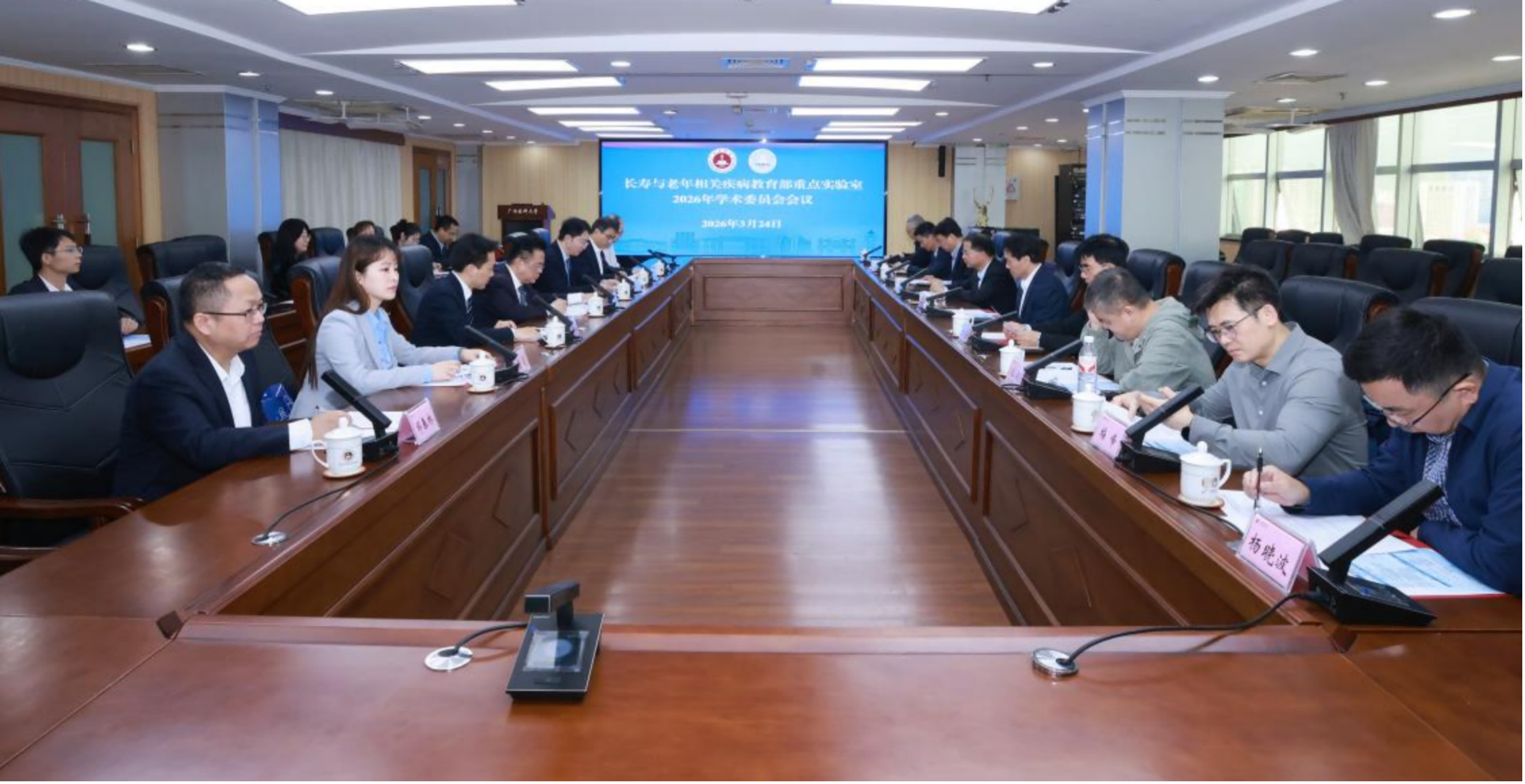 2026年3月24日上午,长寿与老年相关疾病教育部重点实验室2026年度学术委员会会议在我校召开。我校校长曾志羽,中国工程院院士、北京大学国际癌症研究院院长詹启敏,副校长李浪,副校长、重点实验室主任谭国鹤等出席会议。会议分为学术委员会委员聘任仪式和第三届学术委员会第一次会议两个阶段,分别由李浪和詹启敏主持。